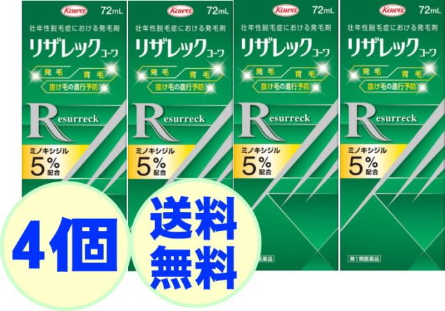 【第1類医薬品】興和 リザレック リザレックコーワ 72mL 4個 壮年性脱毛症 発毛剤 育毛 ミノキシジル5% 配合