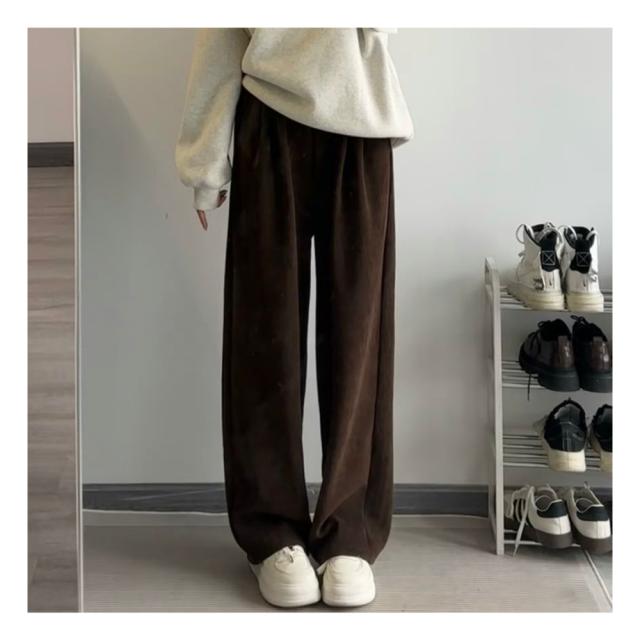 ロングパンツ ワイドパンツ リブニットパンツ 裏起毛 秋冬 美脚効果 ハイウエスト ゆったりロングボトムス