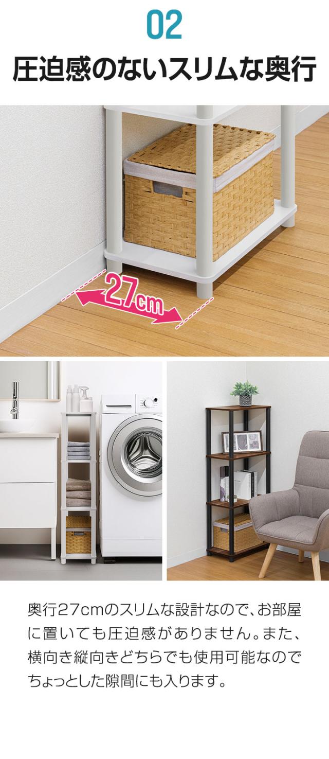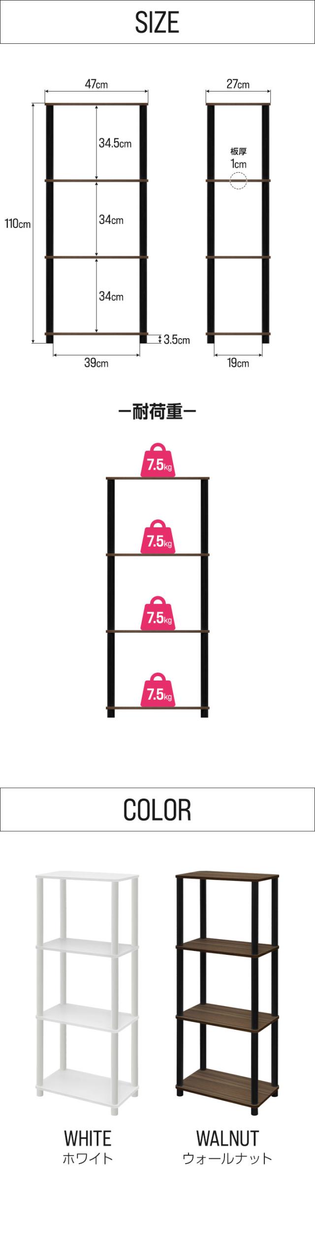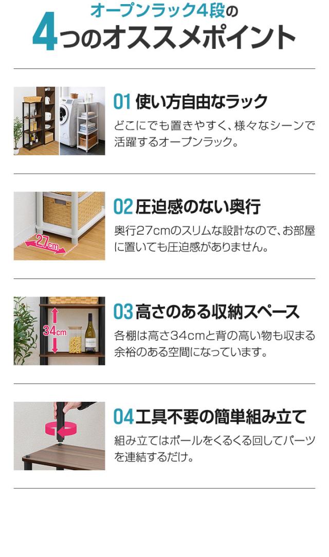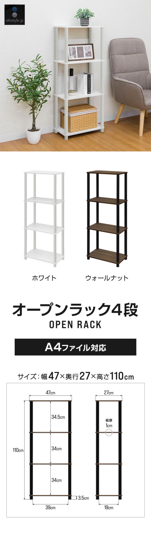 オープンラック 4段 組立て簡単 工具不要 棚 収納 収納棚 ラック シェルフ 幅47cm奥行27cm 高さ110cm スリム A4対応 ディスプレイラック サイドラック 本棚 絵本棚 フリーラック 隙間収納 木目調 飾り棚 オープンシェルフ 1年保証 送料無料