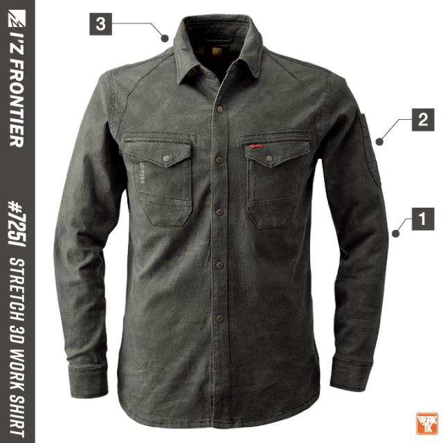 #7251 アイズフロンティア ストレッチ3Dワークシャツ 業界に革命をもたらしたストレッチワークウェアの先駆者。 その絶品の着心地は本物の証!
