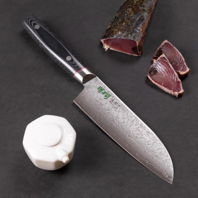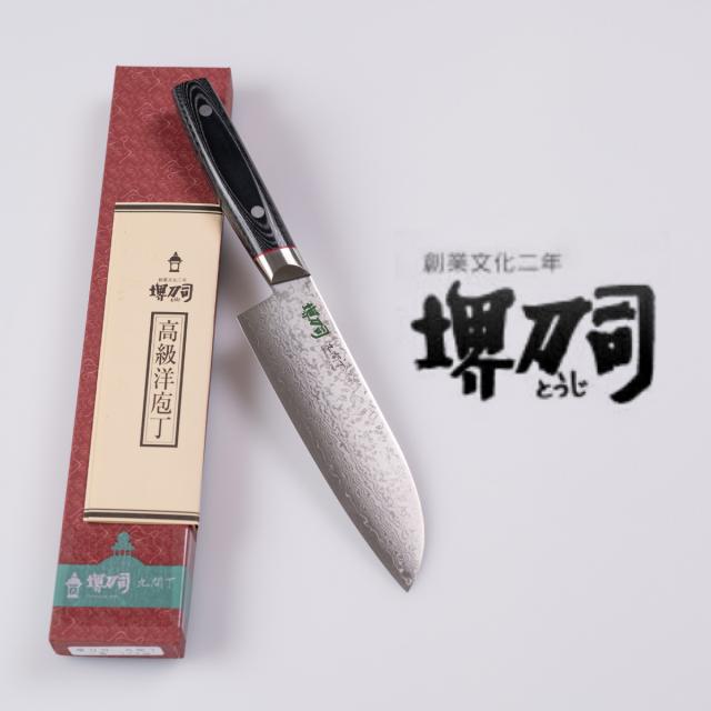三徳包丁 17cm 九間丁 ダマスカス鋼割込 黒マイカルタ 堺刀司 日本製 ( 包丁 料理包丁 万能包丁 キッチンナイフ 文化包丁 高級包丁 17センチ 170mm 170ミリ 両刃 調理小物 調理道具 下ごしらえ用品 キッチングッズ キッチンツール )
