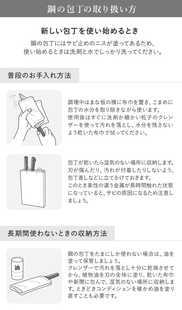 ![]() 三徳包丁 | ![]() 牛刀 | ![]() ペティナイフ |