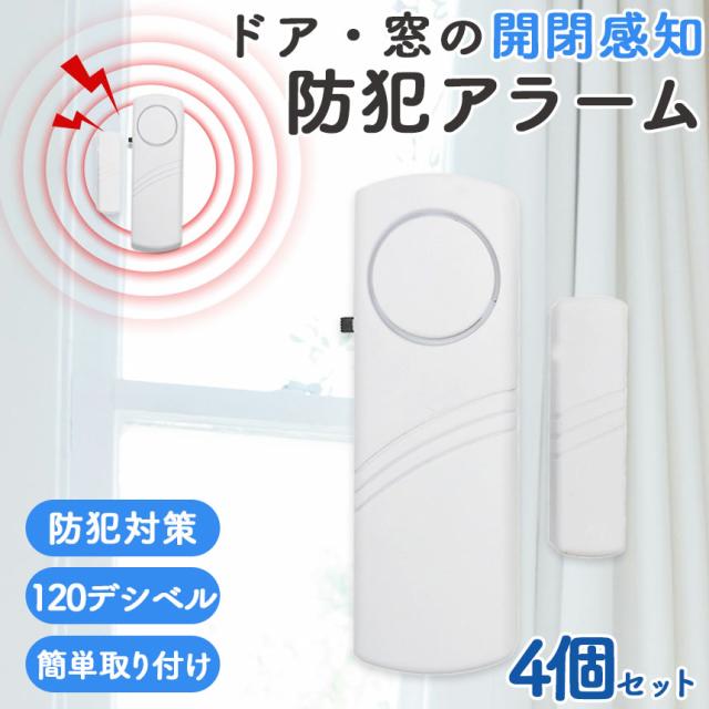 防犯アラーム 窓 ドア 4個セット 防犯ブザー 大音量 120dB 防犯グッズ 窓用 ドア用 扉 引き出し 泥棒 侵入防止 警報 チャイム 空き巣 電池式 窓ガラス 防止 防犯 警報機 不法侵 電池 ガラス 玄関 簡単設置 警報音 不法侵入 犯罪 闇バイト アラーム ブザー 家 家族 小型 盗難