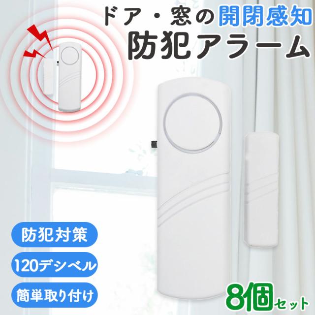 防犯アラーム 窓 ドア 8個セット 防犯ブザー 大音量 120dB 防犯グッズ 窓用 ドア用 扉 引き出し 泥棒 侵入防止 警報 チャイム 空き巣 電池式 窓ガラス 防止 防犯 警報機 不法侵 電池 ガラス 玄関 簡単設置 警報音 不法侵入 犯罪 闇バイト アラーム ブザー 家 家族 小型 盗難