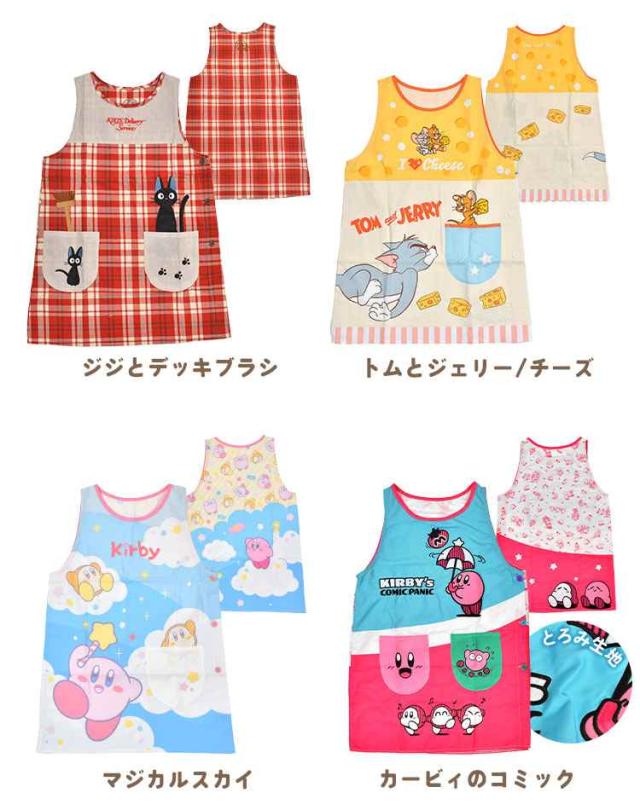 エプロン 保育士 かぶるだけ キャラクター 割烹着 大人 女性 ジブリ トトロ 魔女の宅急便 ジジ ミニオン トムとジェリー おさるのジョージ カービィ かっぽう着 袖なし 着脱簡単 ラン型 背付き ボタン ポケット フリーサイズ 大きい かわいい 保育園 幼稚園 先生 介護士 保母