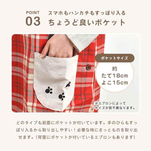 背付きタイプでずれにくく、動くことが多い保育士さんや介護士さんなどのお仕事用にもぴったり!もちろんお家用にも◎ 着脱はサイドのボタン式。前面にはポケットが付いています。