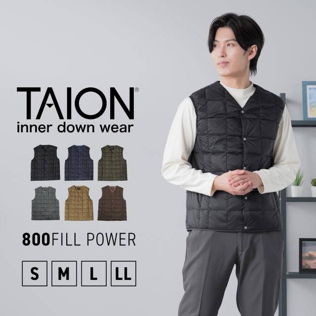 Vネックボタン インナーダウンベスト(TAION-001)TAIONの定番、ベーシックインナーダウンは、ジャケットやコートの下に着るのはもちろんニットやセーター・シャツ・パーカーなどの上にも気軽に羽織れる軽くて暖かく着回しやすいシンプルなデザインが特徴。Vネックの首元はシャープでスッキリとした印象を与えてくれます