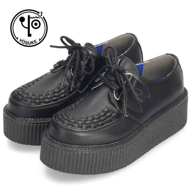 ヨースケ YOSUKE 厚底ローファー ラバーソール レディース 黒 レースアップ シューズ 2810025 靴 カジュアル ブラック 幅広 ゆったり 3E プラットフォーム