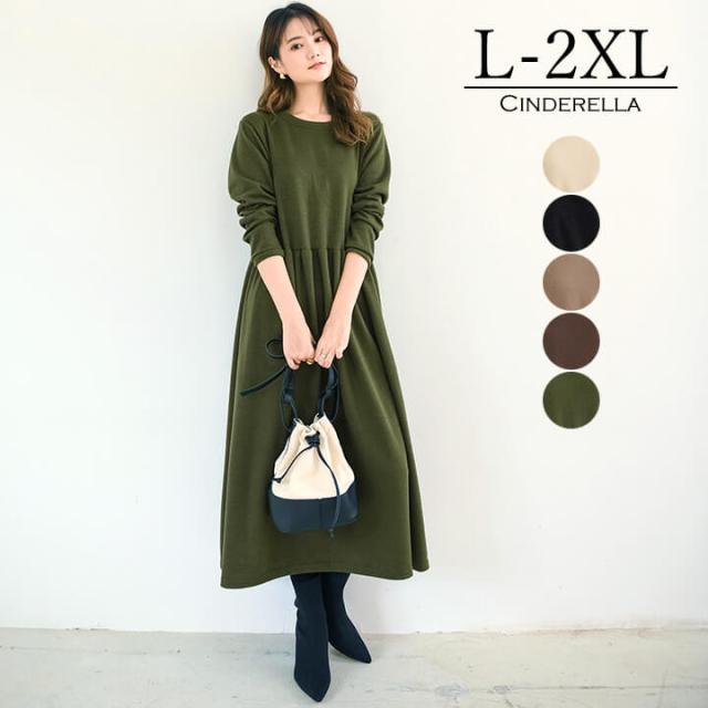 マキシ丈ワンピ ワンピース ロング 大人 カジュアル ヌケ感 ワンピース 無地 シンプル マキシワンピース ラウンドネック 秋 冬 秋冬 カットソー 大きいサイズ ママ ロングT 長袖 七分袖 細見え 二の腕カバー 長め丈 ゆるワンピ フレア フレアライン 抜け感 くすみカラー 組み合わせ コーデ コーディネート M L XL 2XL 9号 11号 13号 15号 ベージュ 肌色 ブラック 黒 ブラウン 茶 コーヒー グリーン 緑 rt2168