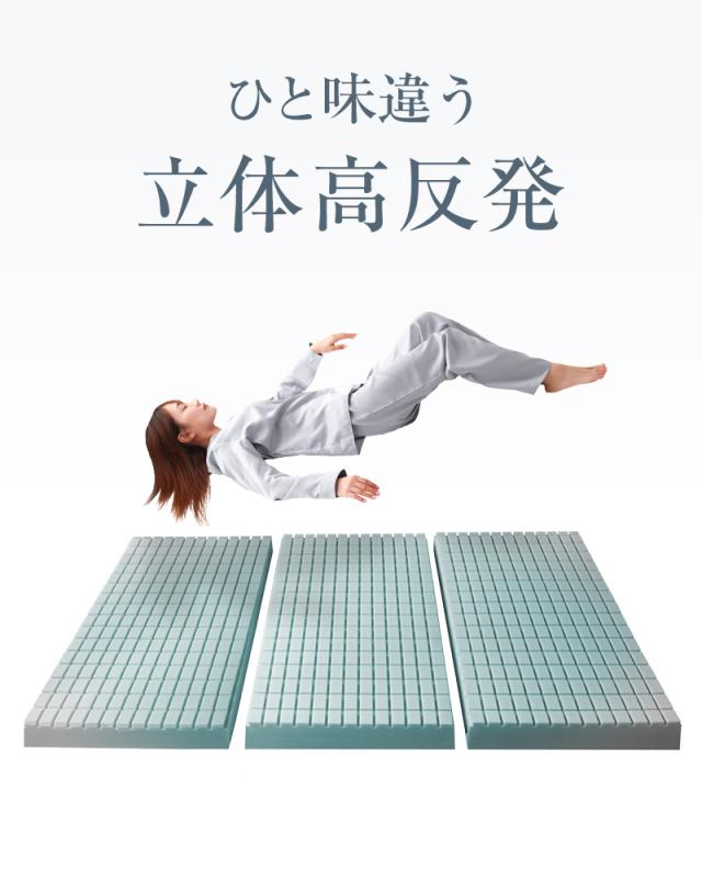 姿勢に合わせて3Dキューブが体圧を分散し身体をしっかり支える高反発マットレスです。