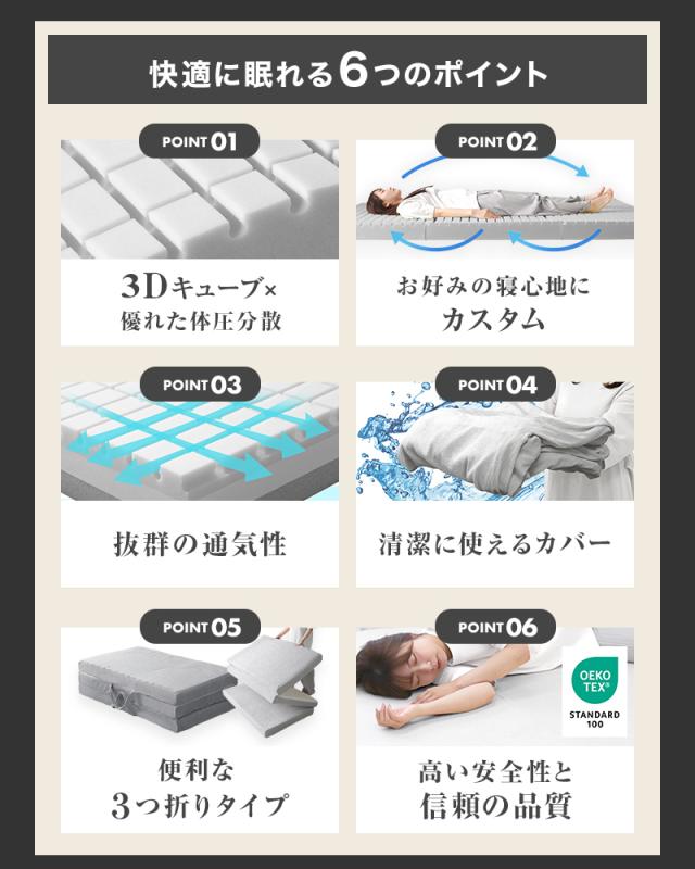 マットレス セミシングル 三つ折り 3Dキューブ セル 高反発 10cm 3DNell サンドネル 3層構造 200N 30D 極厚 体圧分散 腰痛 改善 高反発マットレス 折り畳み 折りたたみ 敷き布団 敷布団 高反発マット マット 折りたたみ 凹凸 布団 敷き布団 敷布団 寝具 新生活 SS 送料無料