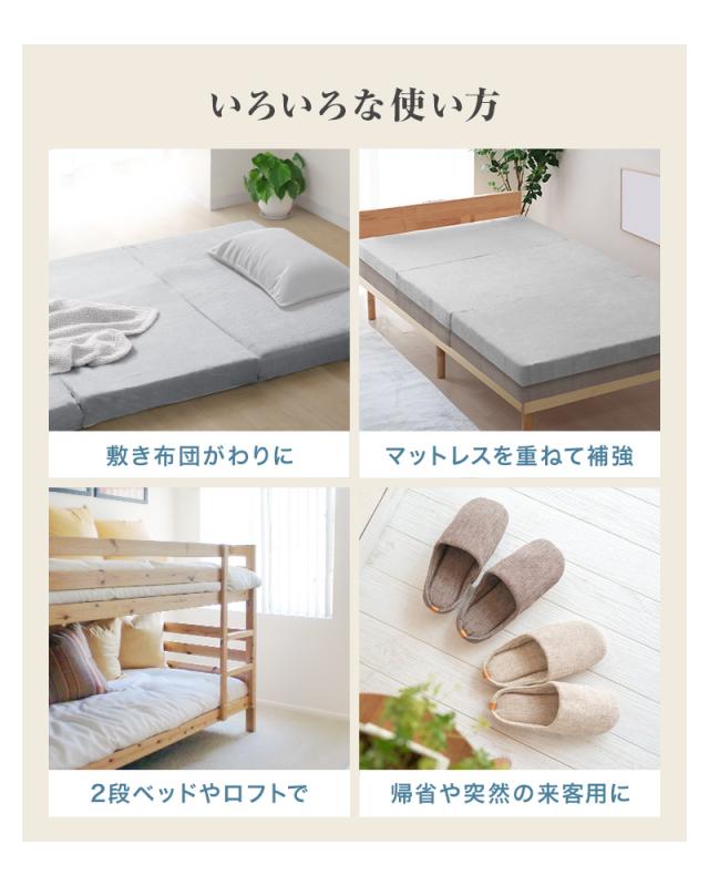 三つ折りタイプは、押入れなどに収納しやすく、立て掛けておいても場所をとりません。