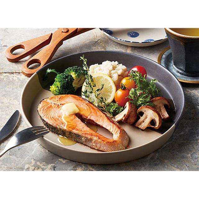 肉厚にカットしたステーキ用キングサーモンとバターをセットにしてお届けします。
