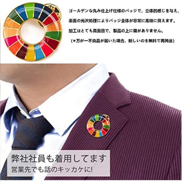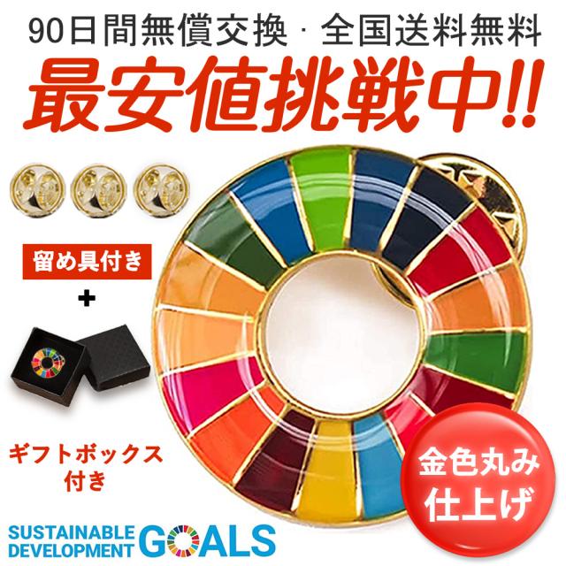 SDGsバッジ 2個入り 25mmサイズ 金色丸み仕上げ 国連ガイドライン対応 快適に着用できる ファッション 流行 鮮やか 留め具6個付き(エポ盛) ピンバッジ 襟章