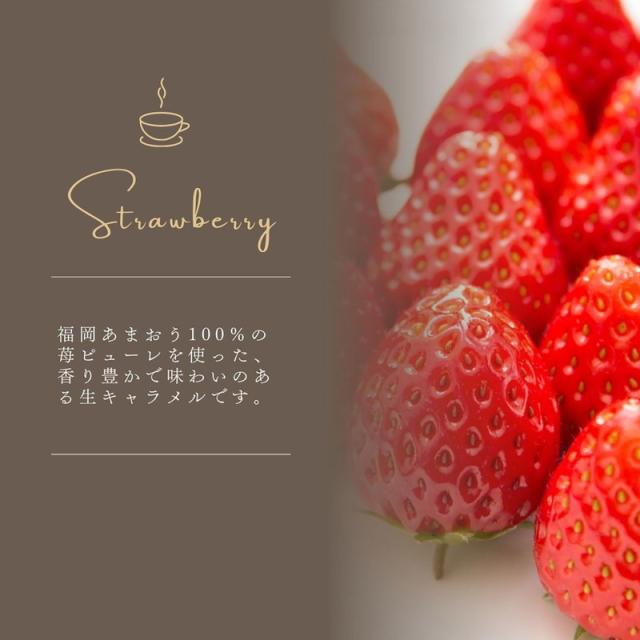 【あまおう苺】福岡あまおう100%の苺ピューレを使った、香り豊かで味わいのある生キャラメルです。