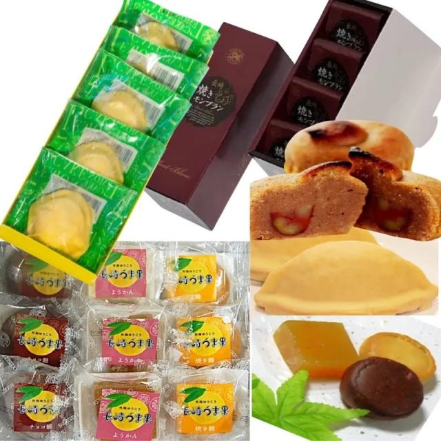 長崎銘菓セット/焼きモンブラン 4個入・長崎レモンケーキ5個入・うま果9個セット(ゆうこう羊羹・ゆうこうチョコ饅・ゆうこう焼き饅各3個)