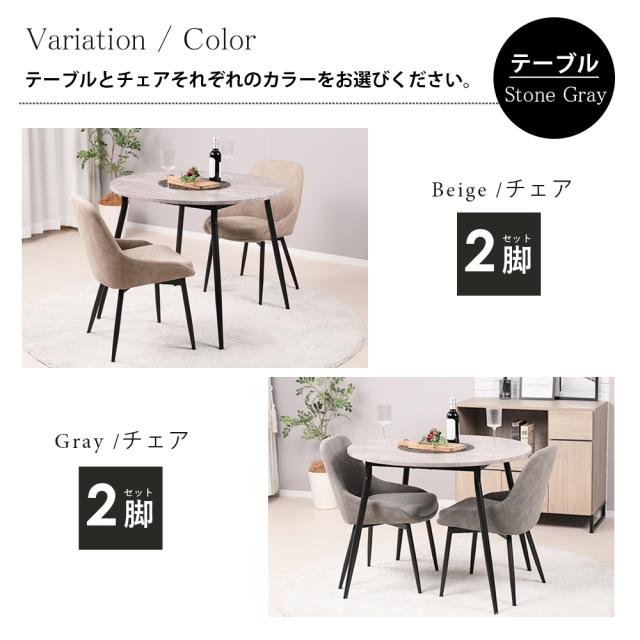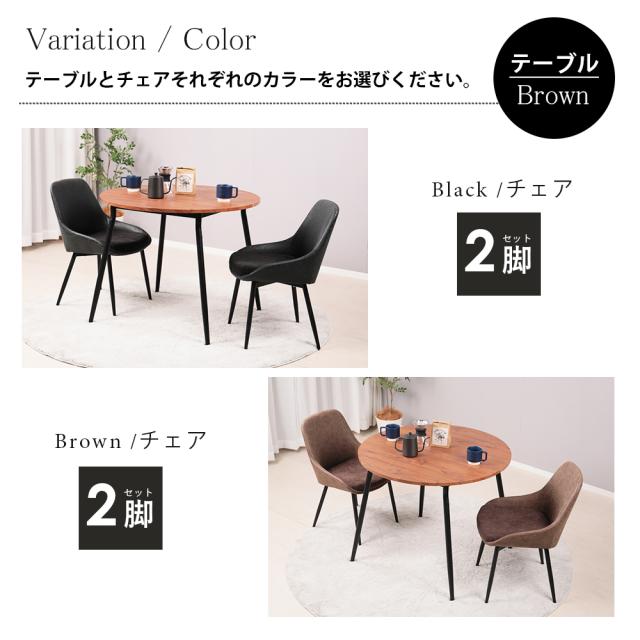 ダイニングテーブルセット 2人用 北欧 3点セット 丸 テーブル 90cm幅 2人掛け ダイニングチェア 2脚セット おしゃれ カフェテーブルセット 90センチ 円形 円卓 二人用 イス 椅子 食卓テーブル 木目調 大理石風 コンパクト Ento(エント)