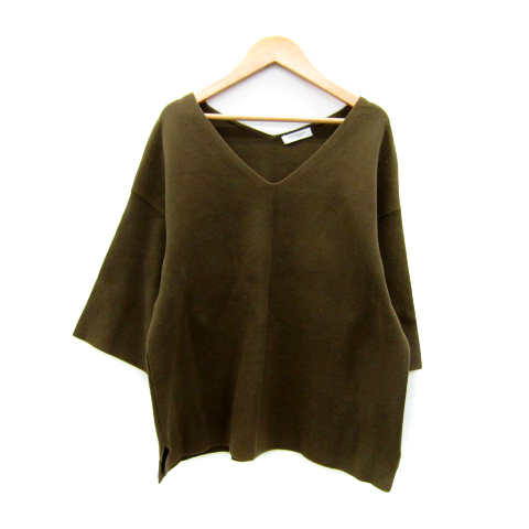 【中古】B&Y ユナイテッドアローズ ニット カットソー 七分袖 Vネック オーバーサイズ カーキ /SY22 レディース