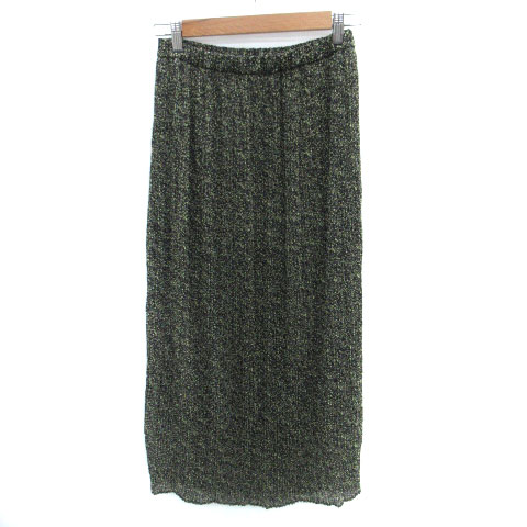 【中古】ローリーズファーム プリーツスカート マキシ丈 ロング丈 総柄 F マルチカラー 黒 ブラック 緑 グリーン
