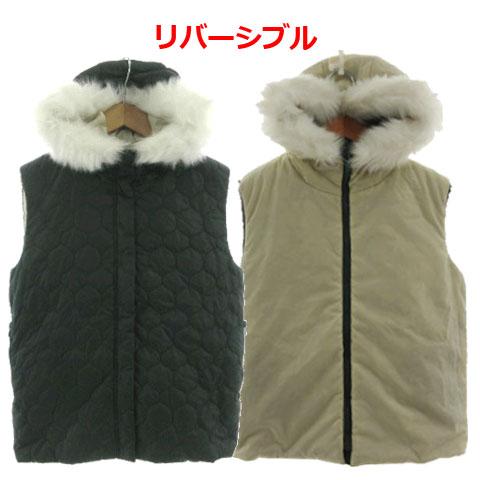 【中古】OLIVE des OLIVE ジャケット ベスト リバーシブル フーディー ファー キルティング 中綿入り 緑系 ベージュ