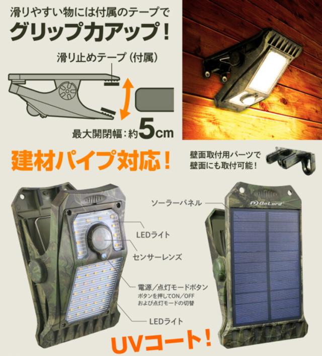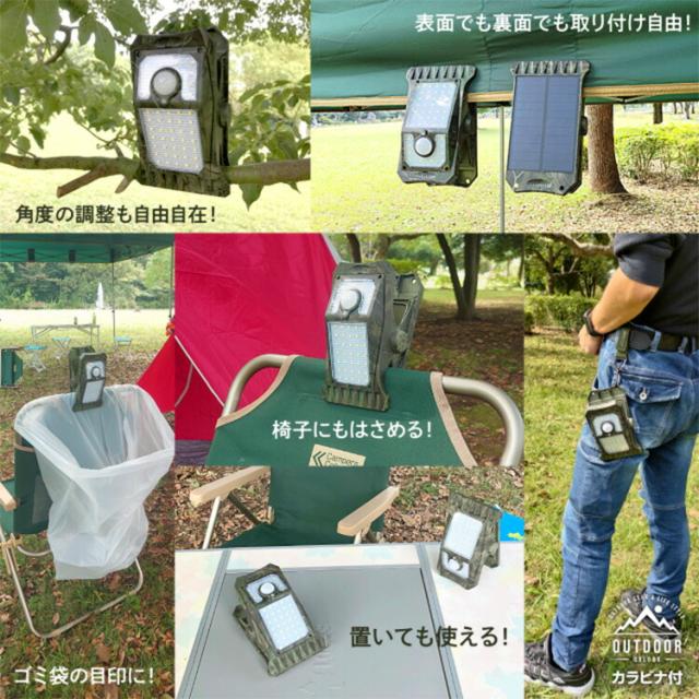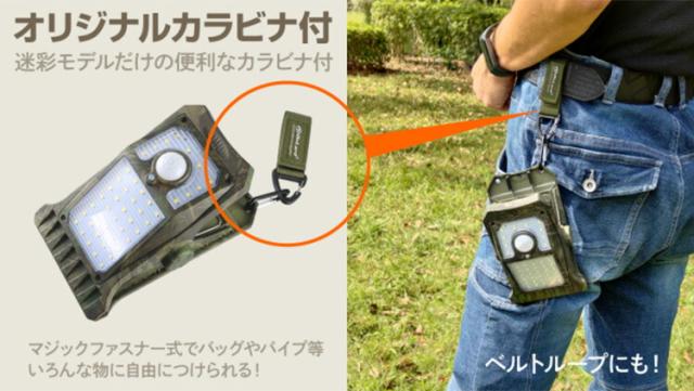 新型クリッパ OL-336C ソーラー充電式クリップ型センサーライト 迷彩柄 | クリップ式 LEDライト 暖色 人感センサーライト 屋外 屋内 アウトドア キャンプ 防犯 防犯ライト 防犯グッズ【送料無料(宅配便)】