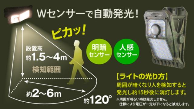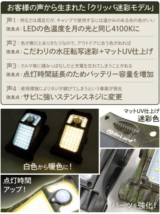 ■keyword:クラウドファンディング/クラファン/Makuake/マクアケ/玄関照明/ライト/LEDライト/センサーライト/モーションセンサー/人感センサー/屋外/屋内/防犯/防犯対策/対策/廊下/駐車場/駐輪場/ランニング/ウォーキング/節約/エコ/キャンプ/アウトドア/レジャー/防災/災害/緊急/LED/LEDライト/ソーラー/ソーラーライト/太陽光/電池不要/充電式/クリップ/ソーラーパネル/灯り/挟む/防塵/防水/一体型/シンプル/スタイリッシュ/小型/使いやすい/屋外/室内/正規品/暖色/中輝色/迷彩柄/迷彩/迷彩色/OL-336C