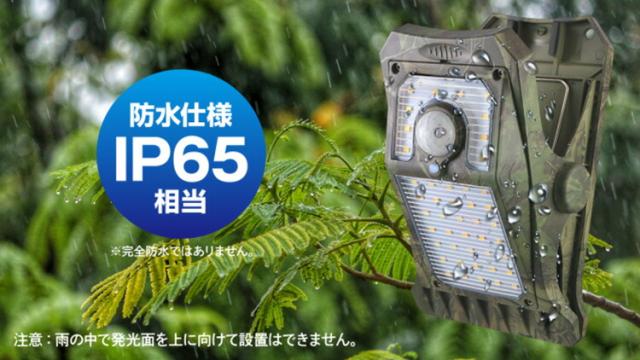 ・こだわりの迷彩カラー!UVマットコート仕上げと暖色発光がアウトドアでもおしゃれに使える! ・ソーラーパネルとLEDが表裏構造なので、窓際で充電して、そのまま夜の室内を照らすことも可能! ・灯りが欲しい場所にはさんですぐ発光!物干し竿や手すりなどに簡単取り付け! ・ソーラーパネル一体型を実現したスタイリッシュなクリップ式センサーライト! ・昼間はソーラーパネルで太陽光を効率的に充電!夜間は人感センサーで自動発光! ・常時点灯モードで約12時間連続点灯!アウトドアや災害時などで役立つこと間違いなし! ・明暗と人感の二つのセンサーで夜間に人が通ると強力に自動発光! ・月々の電気代0円!電源不要の省エネ設計!取付も簡単! ・IP65相当という高い防塵防水性能を実現!雨やホコリにも強い安心の防水設計!! ○はさむだけのクリップ式で女性やお年寄りでも取り付け簡単! ○取り付け、取り外しも簡単なので園芸等の軽作業の照明利用にも最適! ○直径約5cmの単管パイプにもそのままはさめるので工事現場の作業にも最適! ○ソーラーパネルが背面にあるのでガラス面に設置すれば室内も照らせる! ○フル充電から点灯回数約300回!※ ※初期充電は電源OFF状態で晴天の日に約2日間以上必要になります。また、天候や季節により変動します。 |