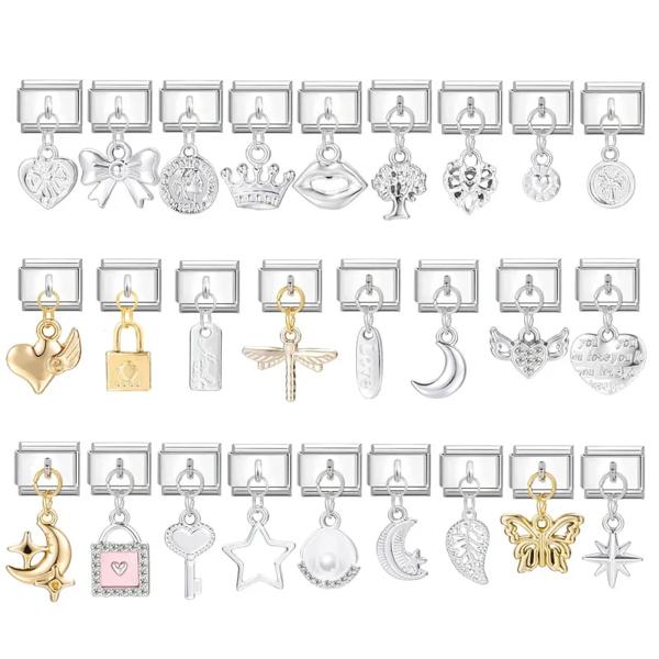 ステンレス鋼のペンダントチェーン イタリアのチャームブレスレット ハート 蝶 王冠 月 星 9mm DIY ファッショナブル