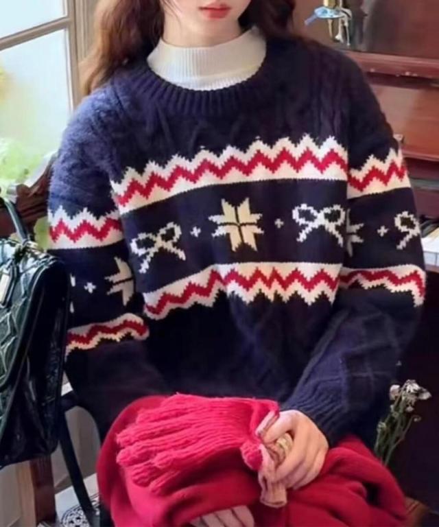 ホリデーノルディック柄ケーブルニットセーター。