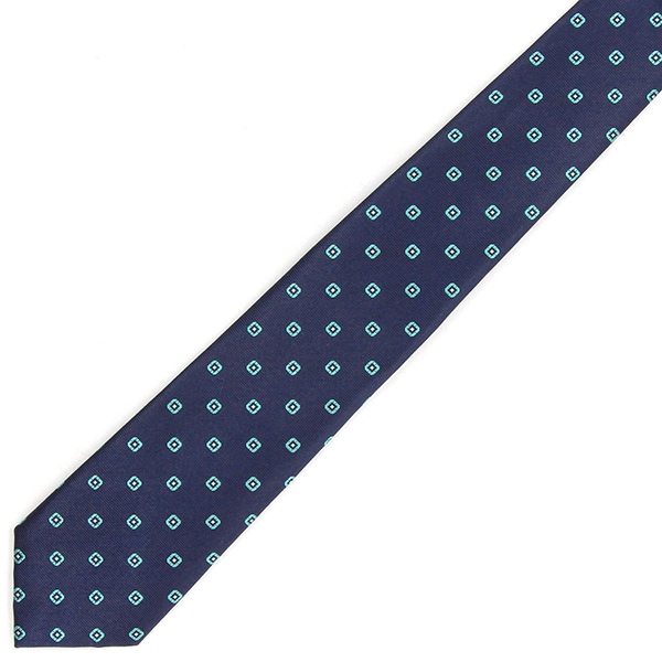 シルクブレンド ネクタイ ダイヤ柄 小紋柄 ネイビー 7.5cm幅