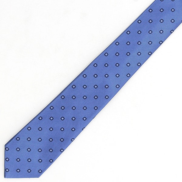 シルクブレンド ネクタイ ダイヤ柄 小紋柄 ブルー 7.5cm幅