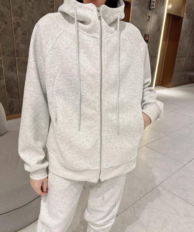 ボリュームのあるネックデザインが特徴的なダブルジップパーカー。