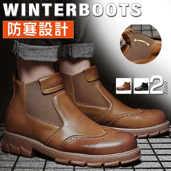 ショートブーツ メンズ 裏起毛 サイドゴア ウイングチップ エンジニア 紳士靴 ワークブーツ 秋冬 チェルシー おしゃれ かっこいい カジュアル