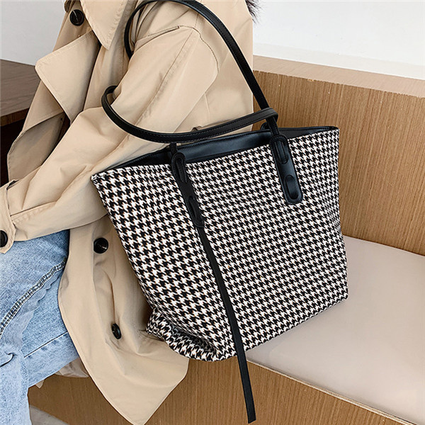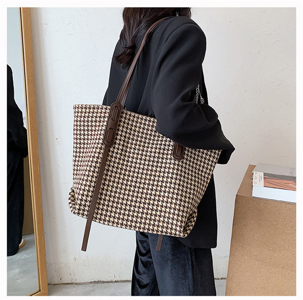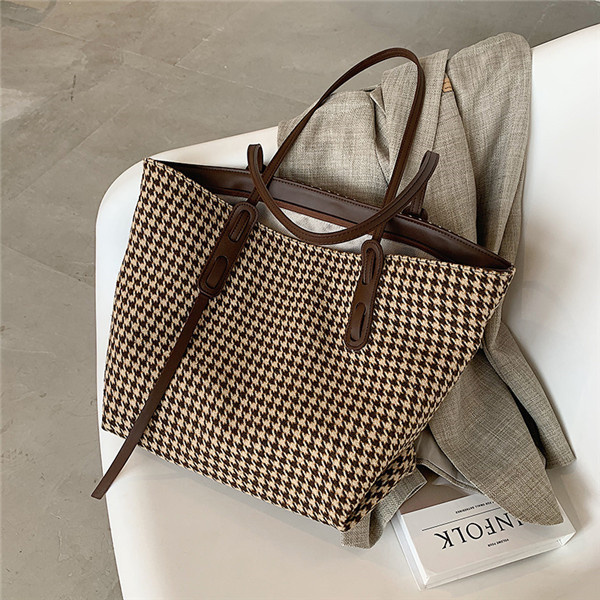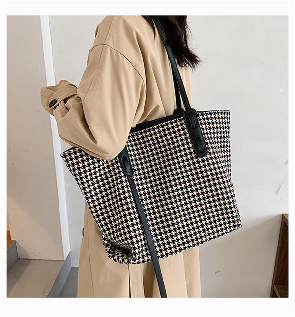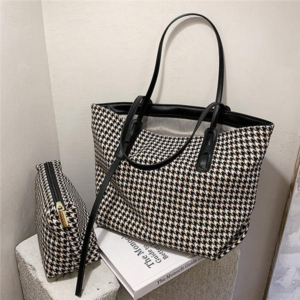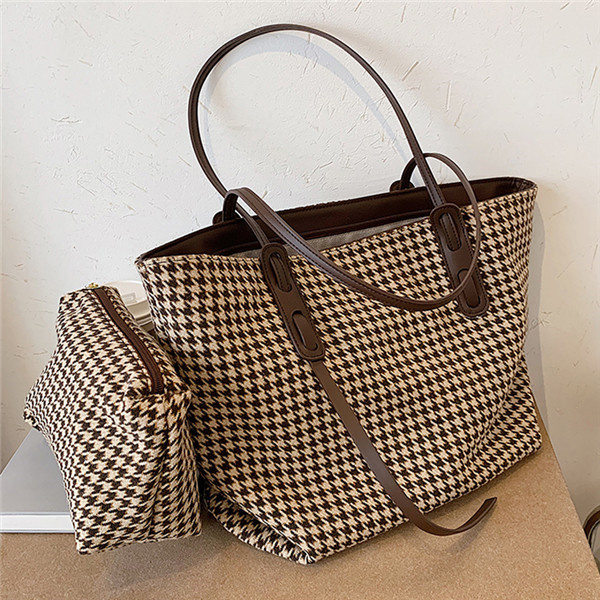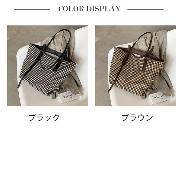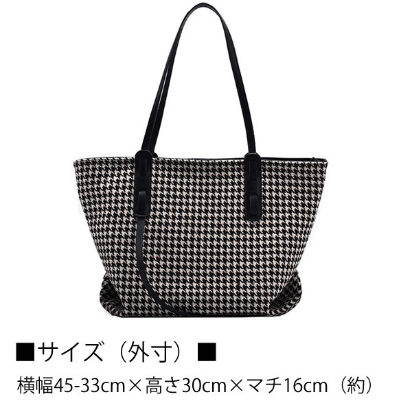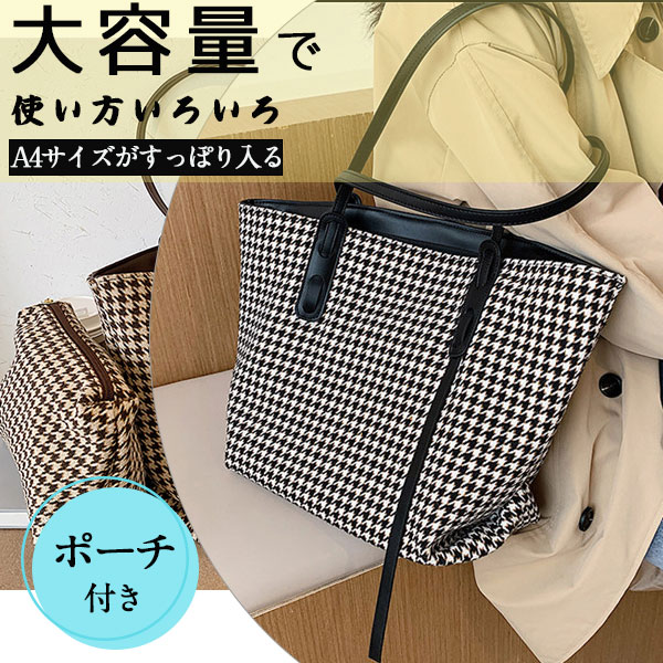 トートバッグ ショルダーバッグ 斜めがけ レディース ポーチ付き A4 千鳥柄 PU ショルダー かばん バッグ 手提げバッグ 大容量 軽量 肩掛け