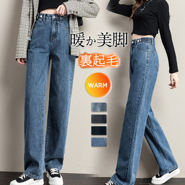 ワイドデニムパンツ レディース 裏ボア 極暖 厚手 暖かい ズボン パンツ 裏起毛パンツ デニムパンツ 暖かい 防風 防寒 あったか 秋冬 40代