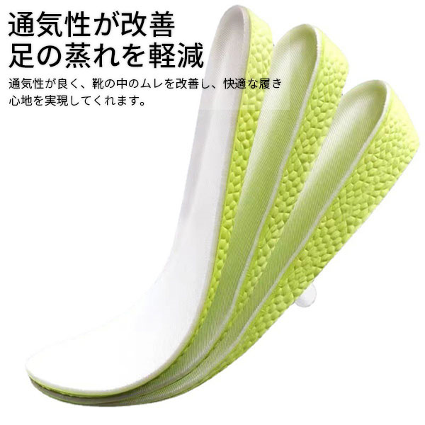 - インソールの感想と、しましては かかとの高さが、3.5センチとあり 少し背伸びをした感じです。少し 歩く時歩きづらいですが、なれるまでには 時間がかかります。