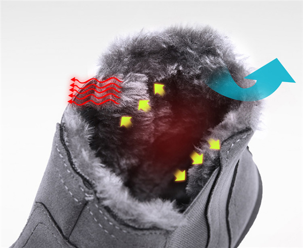 もこもこでふんわりとしたボア素材が靴の内側に施されているのでしっかり防寒し、保温性抜群です。
