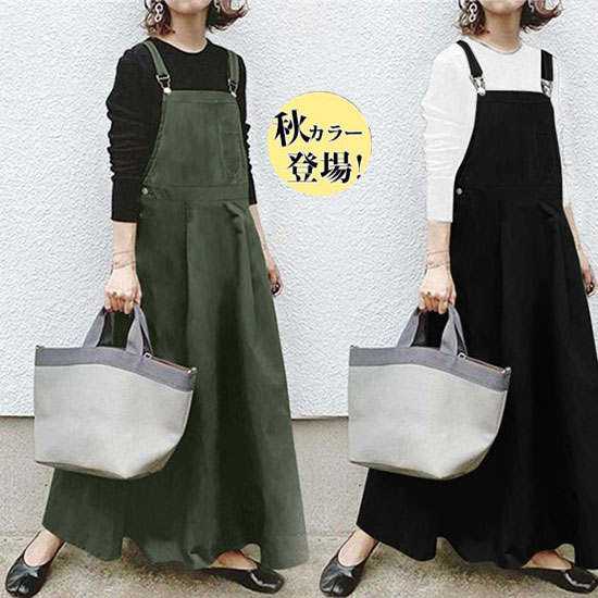 サロペット レディース 春秋 オーバーオール ワイドパンツ シンプル サスペンダー付 ロング丈 ストレッチ 大きいサイズ ゆったり きれいめ 調節可能
