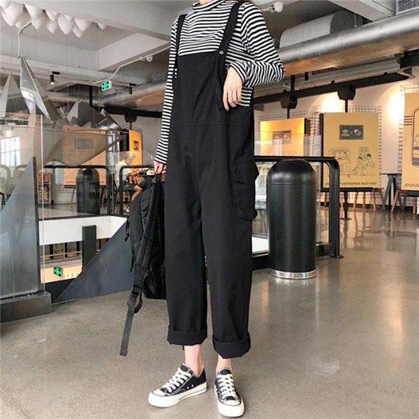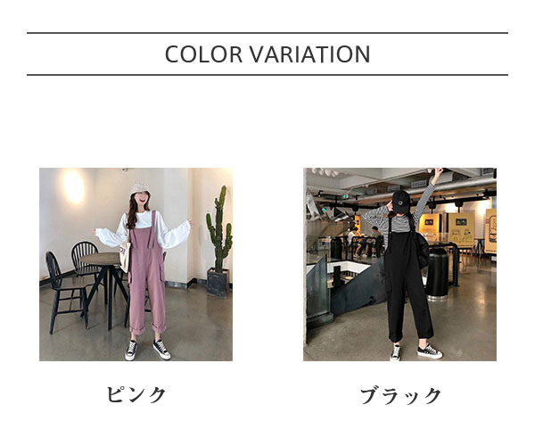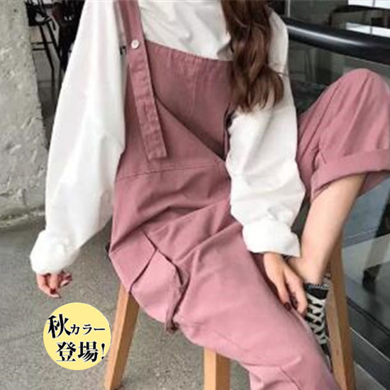 サロペット レディース 春秋 オーバーオール ワイドパンツ シンプル ポケット ロング丈 ポケット 大きいサイズ 可愛い ゆったり 着痩せ ラクチン