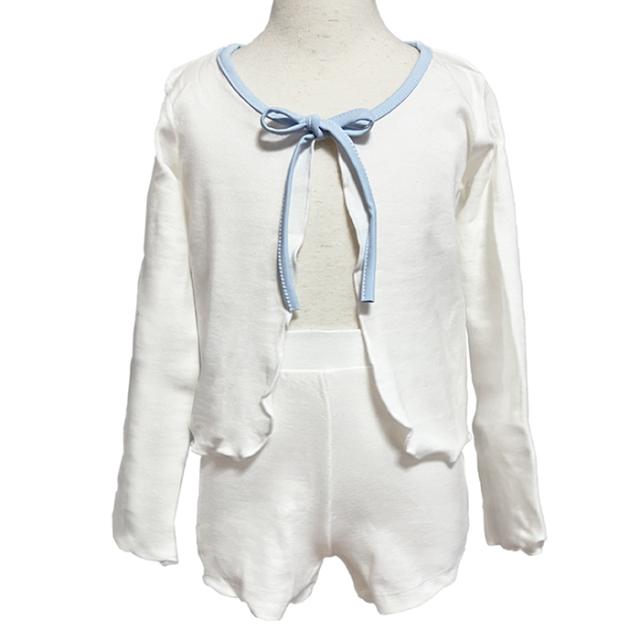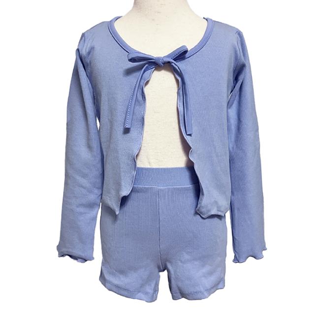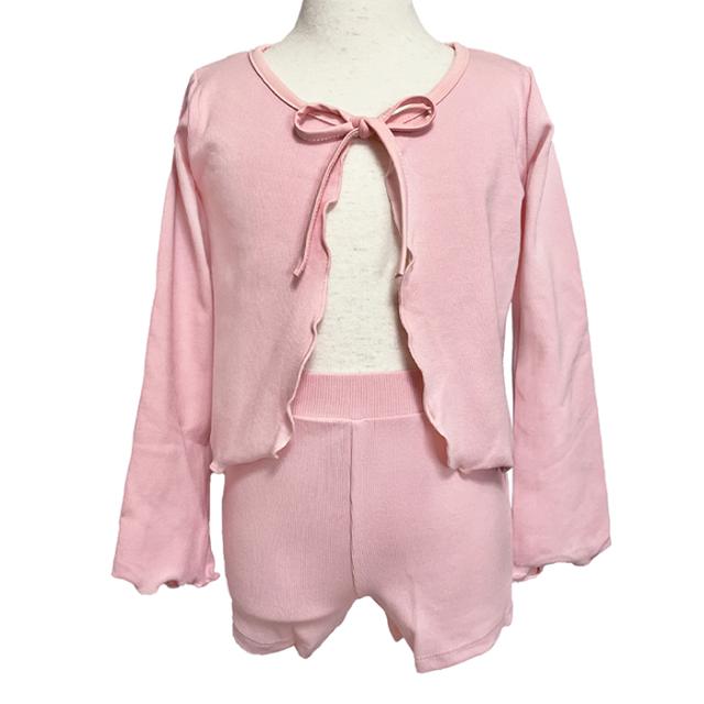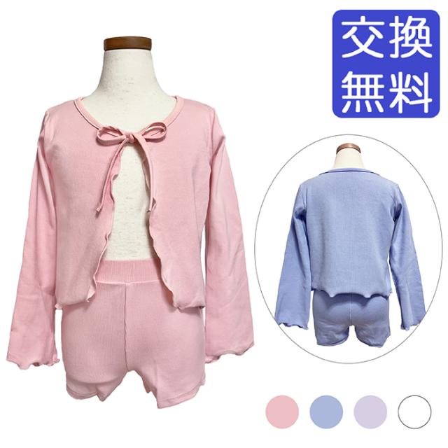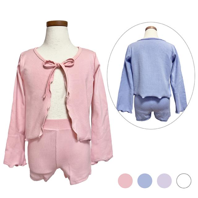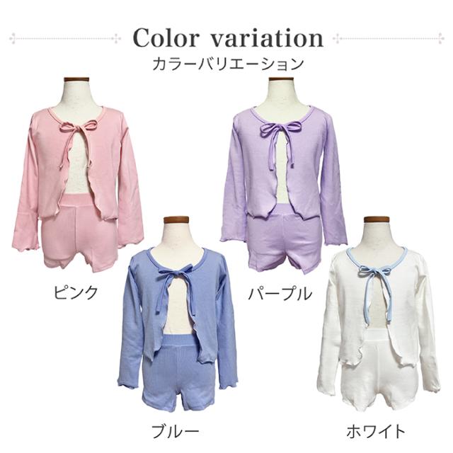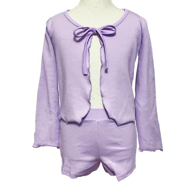 バレエ セットアップ キッズ バレエウェア 上下セット(カーディガン・ショートパンツ セット)子供・ジュニア 長袖 ボレロ 綿ニット リボン 子ども用 キッズ レッスン 練習 着 青 ピンク 紫 白 水色 105 110 115 120 125 130 135 140 145