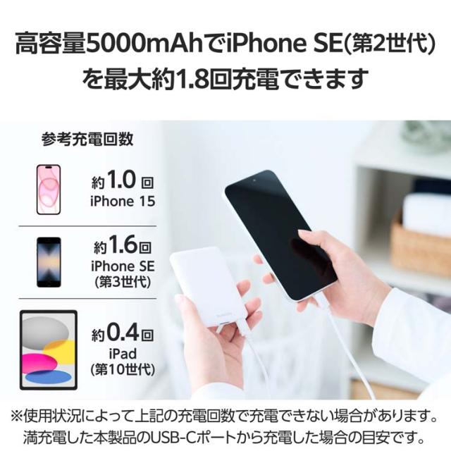 【エレコム モバイルバッテリー 薄型 USB Type-C 5000mAh 15w 充電器 iPhone ホワイトの商品詳細】