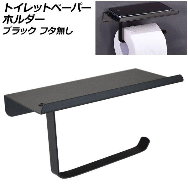トイレットペーパーホルダー ブラック 天板付き フタ無し スマホや芳香剤を置ける AP-UJ1092-A-BK