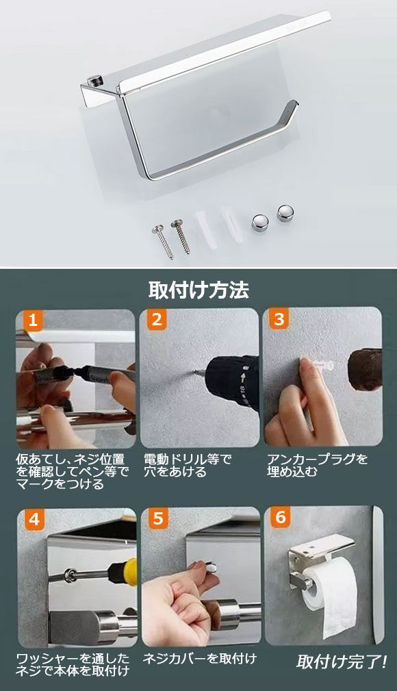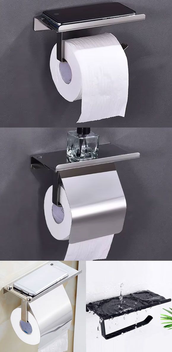 スマホなどを置ける便利な天板付きのトイレットペーパーホルダーです。