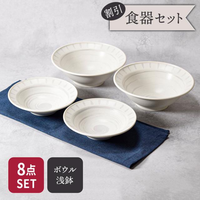 サラダボウル 20.5cm & 浅鉢 17.5cm 4人用 8点セット 2サイズ×各4点 バース 割引セット 送料無料 和食器 おしゃれ モダン 和モダン シンプル シック ボウル 鉢 お皿 皿 食器 浅鉢 取り鉢 取り皿 煮物鉢 サラダボウル ヨーグルトボウル