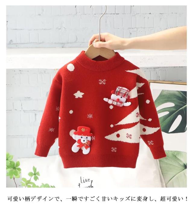 クリスマス柄 ニットセーター 子供服 キッズ 男の子 女の子 ベビー服 防寒 セーター クリスマスニット 可愛い トップス 長袖 赤ちゃん 子ども服 80 90 100 110 120 130 通園 通学 秋冬 写真 撮影 プレゼント 送料無料