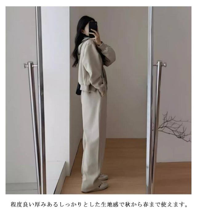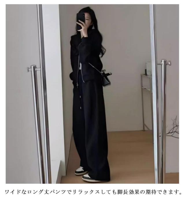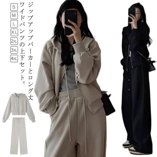 セットアップ レディース パーカー ワイドパンツ きれいめ 2点セット ジップアップパーカー フード付き 長ズボン 上下セット カジュアル 30代 40代 普段着 部屋着 スポーツウエア 大きサイズ 送料無料