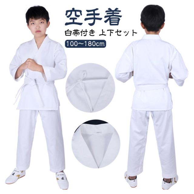 | 【空手着】【白帯付き 上下セット】【100〜180cm】 入門者向けの空手着 上下白帯 3点セット 上着とパンツ、白帯がセットになっているので、これから空手を始めてみたい人、試しに習ってみたい人におすすめ。 通気性、快適性、耐変形・耐摩耗性、柔らかな生地、手触りにも優れています。 パンツのウエストはゴムと紐仕様で子供でも履きやすい 軽量で柔らかな生地のため動きやすく、乾きやすく、洗濯して乾きが早い方が都合がいい。 【使用対象】学校の授業用・小学生初心者・合気道初心者用として最適です。 | |