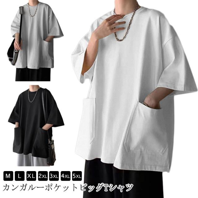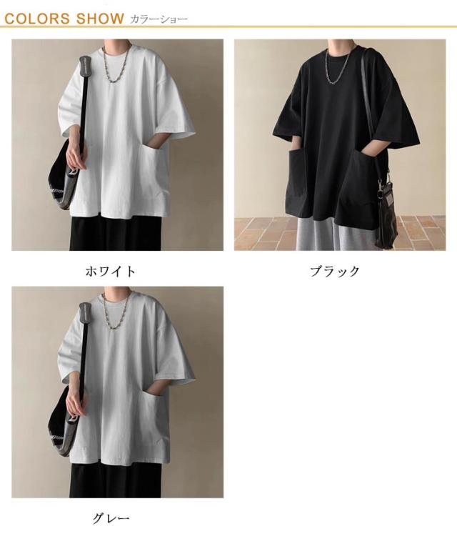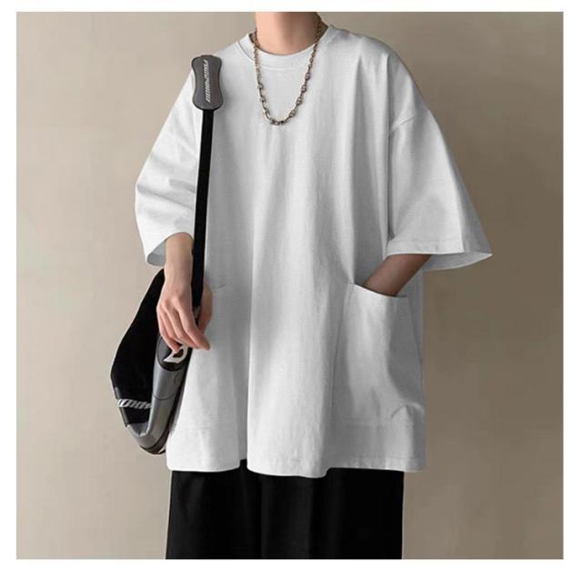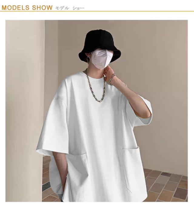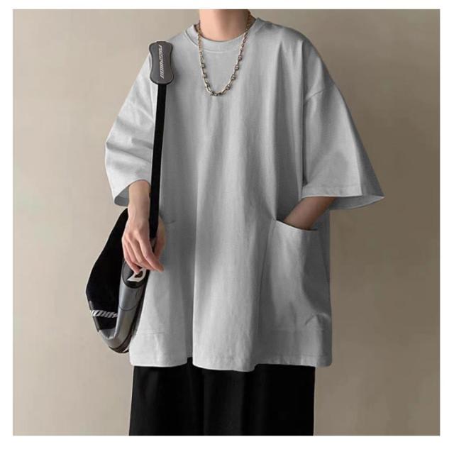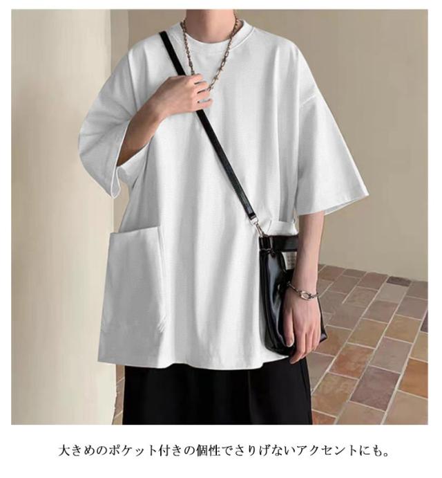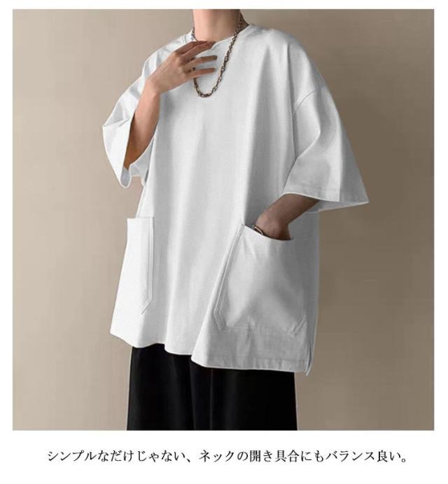 メンズ 送料無料 8分袖 ビッグtシャツ ビッグシルエット 7分袖tシャツ ビッグtシャツ メンズファッション ワイドスリーブ メンズ ポケット付き 春服 オフホワイト グレー 夏服 ブラック 秋服 半袖 袖 広い 広め