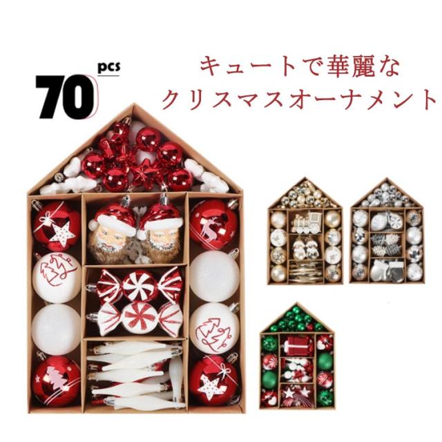 | 70pcs キュートで華麗なクリスマスオーナメント 北欧風のオーナメントセットでお手持ちのツリーがキュートと華麗に大変身♪ 家族や友たち、恋人などと一緒にツリーを飾り付けるでも、パーティーにクリスマスの雰囲気を添ってもOKです。手入らず、箱から出してすぐ簡単に飾り付けられます。 いろいろなシーンにもご利用いただけます。おうちのリビングや玄関、店舗ディスプレイやオフィスのムードづくりにも大活躍。 多様な種類でクリスマスツリーを華麗に飾ることができます。 ギフト包装を用意しておりますので、家族、友達にプレゼントとして贈るのも最適です。 | |