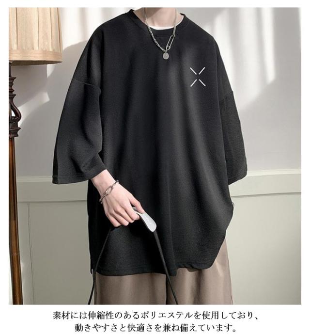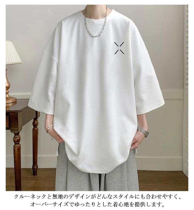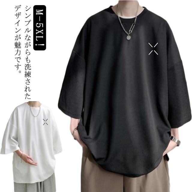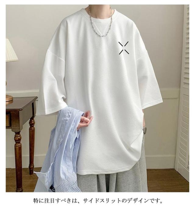 半袖 大きいサイズ サイドスリット 白 カットソー クルーネック トップス メンズ 無地 黒 メンズtシャツ サイドスリット 春夏 オーバーサイズ ゆったり 夏 服 アメカジ 半袖tシャツ 20代 30代 40代 50代